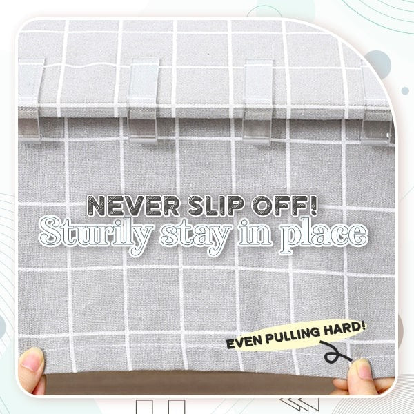 Perfectly user-friendly and can be installed in just a blink. Simply lay your table cover flat and wrinkle-free, then slide each clamp on all corners for stable hold and you're good to go. You can just slide it off for removal and store it until your next use. No worries as the clips are conveniently compact so it can be stashed neatly inside your kitchen cabinets, drawers or cupboards without taking up
